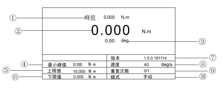 ① 表示儀器在測試產品時所產生的峰值扭矩值。