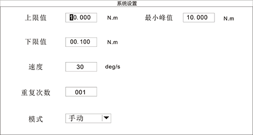 4.1 上限值:根據需要自由設定的最大測試值,達到設定上限值時旋轉軸即自動停止轉動并進行反轉,上限值不得高于滿量程。(用于重復模式)