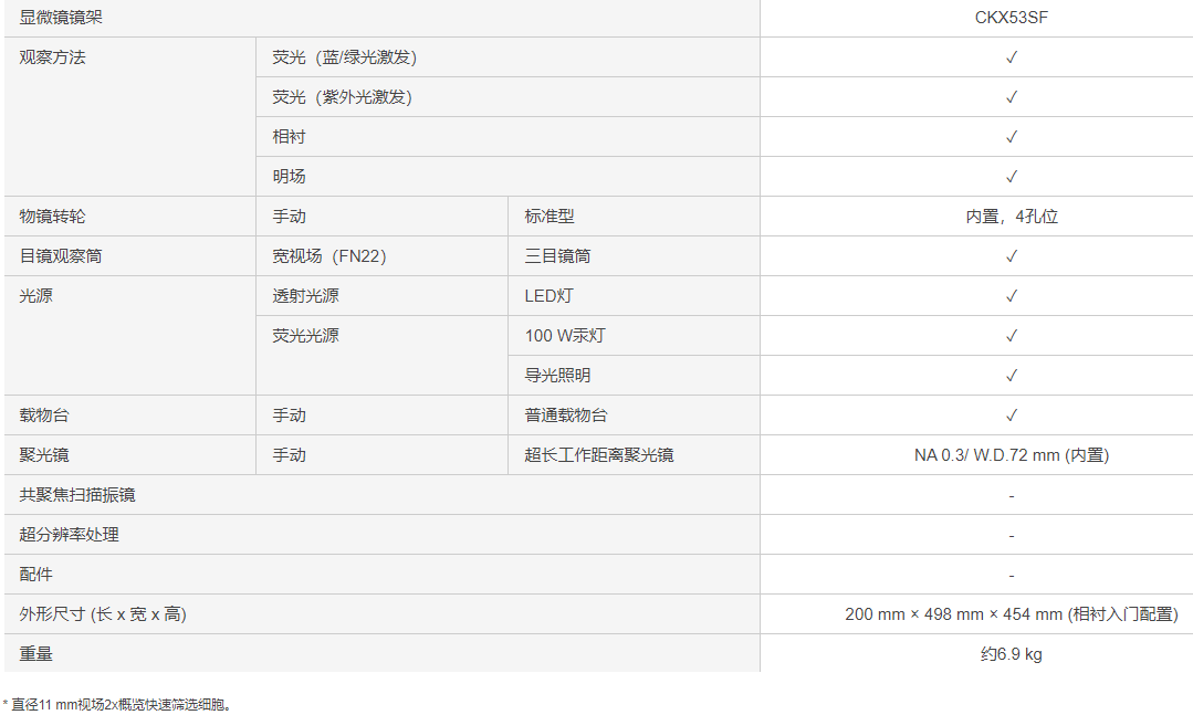 在配備CKX53標準熒光燈組情況下,即使微弱的熒光信號也可以被清晰觀察到,熒光光源類型包括100 W汞燈(U-LH100HG)、130 W高壓汞燈(U-HGLGPS)以及第三方LED *等。均可清晰觀察到微弱的熒光信號。可在三個插槽上安裝與IX3和BX3顯微鏡相同類型的濾光片。*某些地區(qū)不可用。