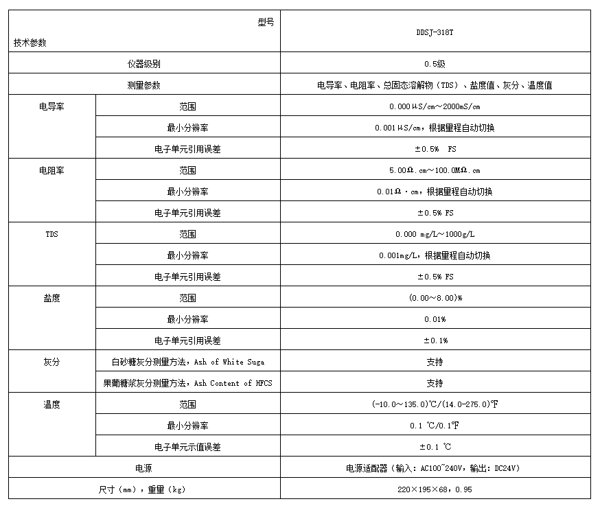 支持自動頻率切換,配套1.0常數電極可費蓋全量程測量(20uS/cm以下樣品建議選用0.1常數或者0.01常數電導電極測量