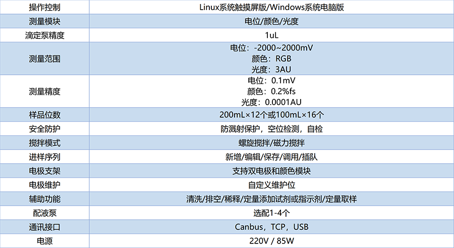 (1)配置多個滴定單元模塊,根據分析需求調用不同的滴定單元進行滴定分析,避免人工頻繁更換滴定劑,也可使用不同的滴定劑進行分段多步驟滴定或主從泵按預設比例同時滴定