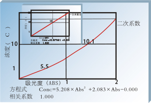 定量測試:標準曲線法、系數法(一次、二次、三次)1.方程式 例:Conc=10.00×Abs+0.000