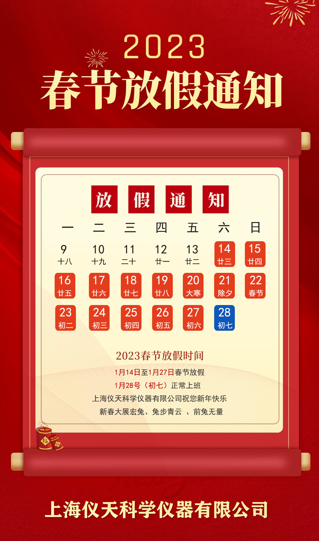 上海儀天2021年春節放假通知2021/2/1