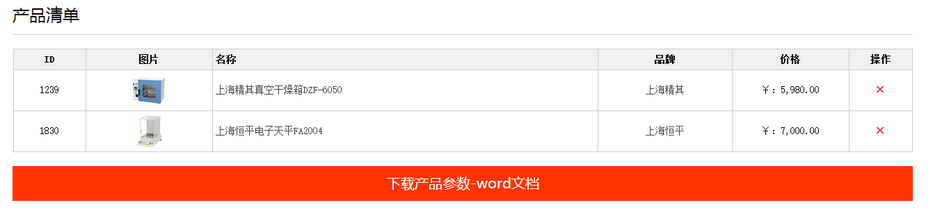 二、產品參數一鍵下載到word:在產品列表及詳情頁均可看到