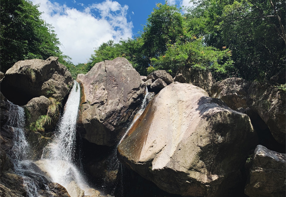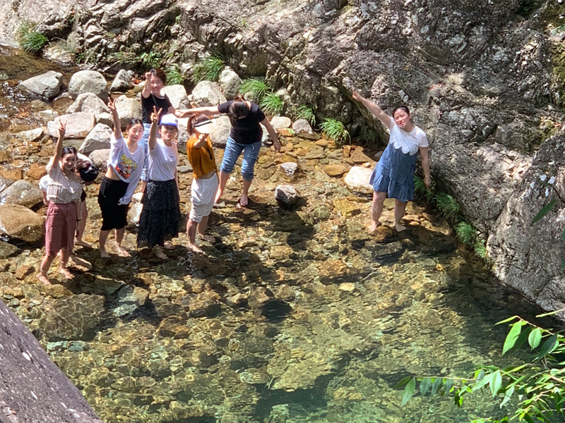 上午我們組織登山活動(dòng),一路上風(fēng)景秀麗,綠樹成蔭。雖然是高達(dá)36℃高溫天氣,但是在大龍灣的山谷里沒(méi)有感受到一絲絲炎熱,山里奇石飛瀑,流淌的水都是沁人的冰爽!